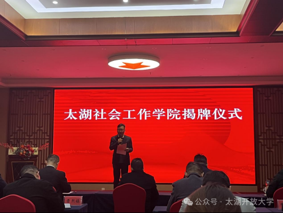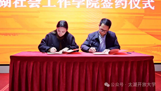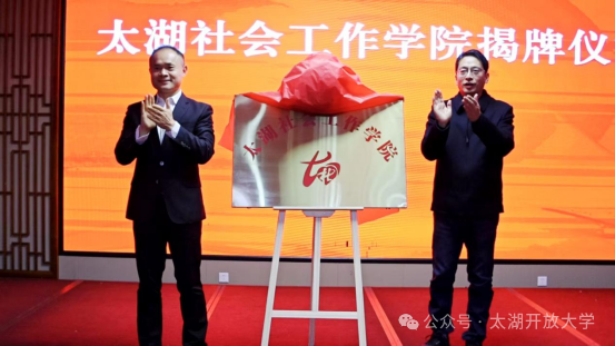 仪式上,许洪斌、杨杰共同为“太湖社会工作学院”揭牌。县委社会工作部与太湖开放大学签署“太湖社会工作学院”合作办学协议。为首批社会工作理论导师和社会工作实践导师颁发聘书。