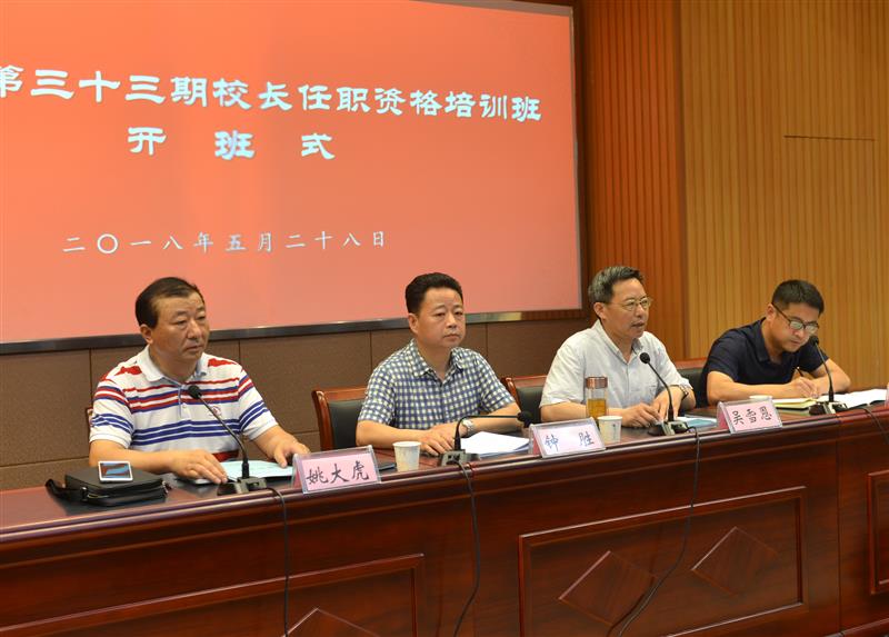 5月28日上午,安庆市第三十三期校长任职资格培训班在安博站·官方版网站登录入口正式开班。市教体局副局长钟胜,市广播电视大学校长吴雪恩,市师资培训中心主任姚大虎,市政府教育督导办副主任、市教体局人事科负责人黄暑出席开班仪式。开班仪式由黄暑副主任主持,来自安庆市区和七县(市) 57名正副校(园)长参加了开班仪式。