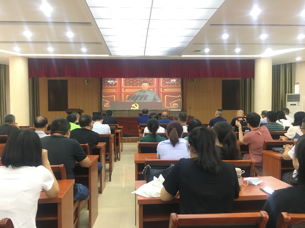 上午8时,全体教职工着装整齐,党员佩戴党徽,怀着无比激动和自豪的心情收看庆祝大会。鲜艳的旗帜、庄严的场景、嘹亮的合唱、热烈的氛围,感染着每一位参会者。大家聚精会神、目不转睛地观看直播盛况感怀中国共产党100年来的光辉历程和取得的历史性成就、发生的历史性变革。