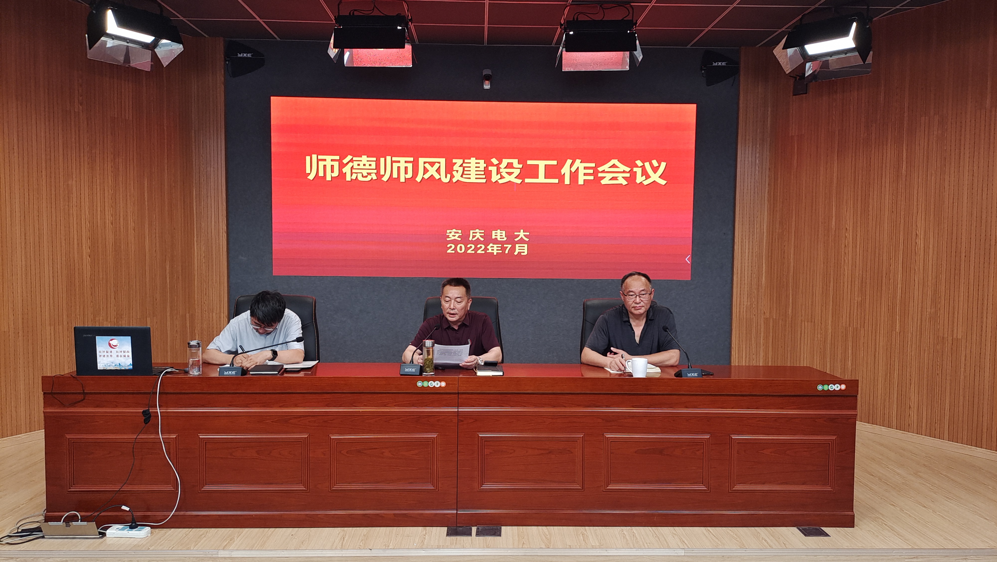 7月4日上午,安博站·官方版网站登录入口在C楼一楼报告厅召开师德师风建设会议。校党委书记、校长曹劲松,校党委委员、副校长周光纯、王佩捷和全体教职工参加会议。