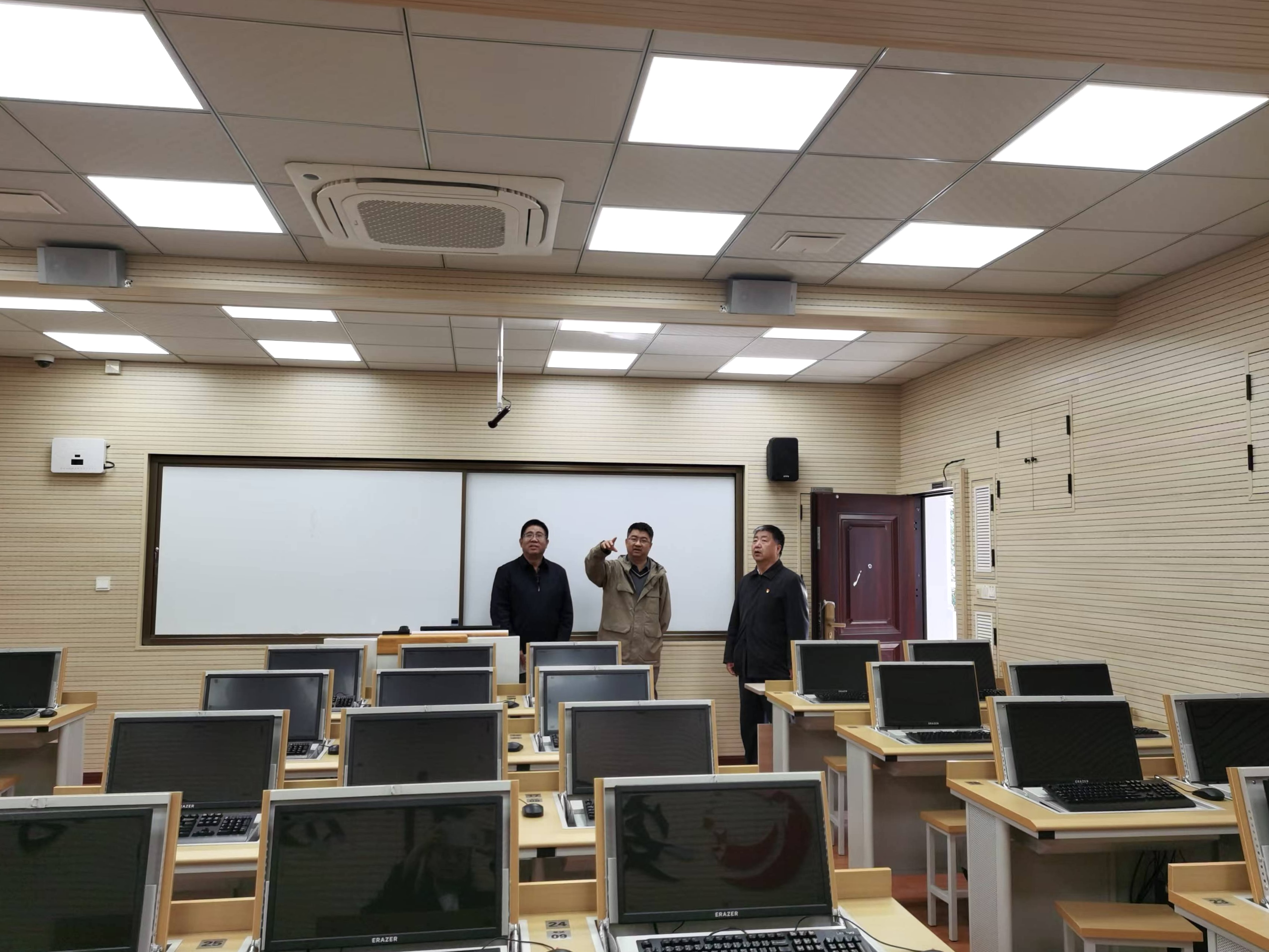 会后,王刚清一行参观了直播教室、标准化考试机房和青少年人工智能教育教室等教学设施。