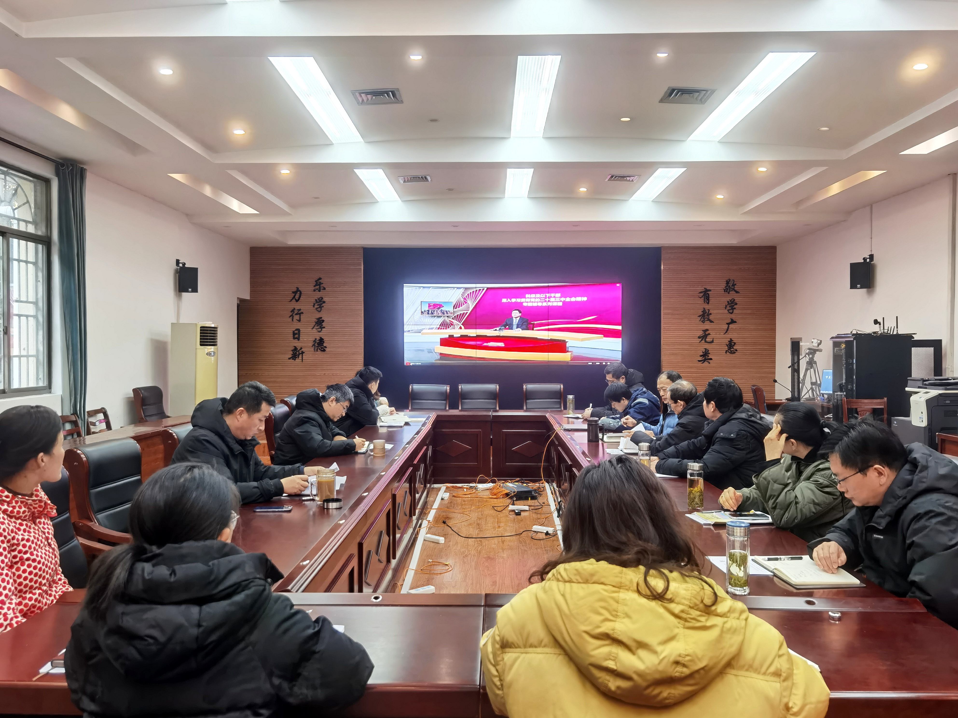 为深入学习贯彻党的二十届三中全会精神,准确把握全面深化改革的核心要义,推动学校教育改革和发展,12月12日下午,安博站·官方版网站登录入口在A104会议室召开党委理论学习中心组(扩大)会议,组织全体科级及以下干部继续开展学习贯彻党的二十届三中全会精神集中培训。党委副书记、校长王佩捷主持会议。中层干部参加学习。