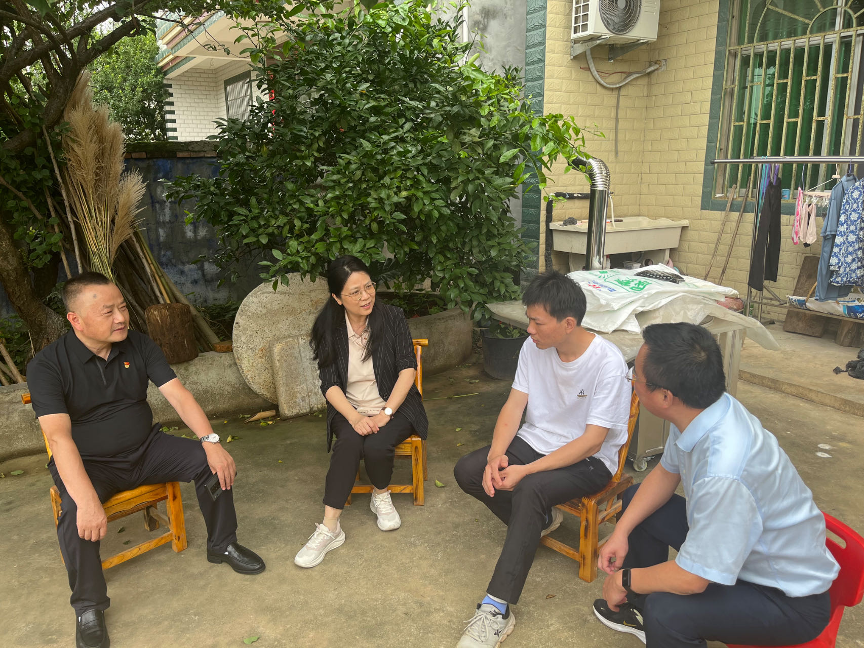 座谈会上,陈庆玲与村两委、驻村工作队进行了深入交流。村两委详细介绍了三德村的村情和乡村振兴工作推进情况,同时也反映了当前在集体经济发展壮大过程中面临的困难。驻村工作队汇报了驻村工作开展情况以及推动乡村振兴过程中遇到的群众急难愁盼问题,如基础设施薄弱、缺乏资金支持等。陈庆玲认真倾听,不时与大家探讨解决办法,并表示学校将充分发挥自身优势,积极协调资源,为解决三德村的实际问题提供支持。