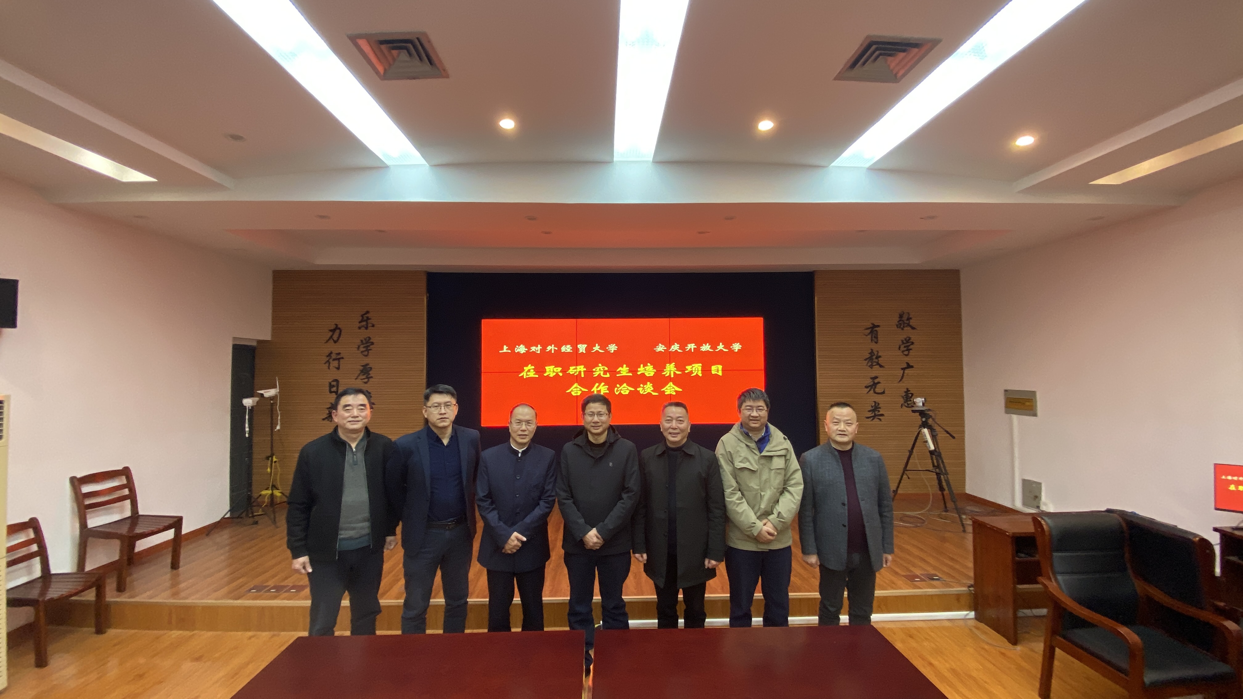 2月21日下午,上海对外经贸大学开放教育学院院长邱贵溪一行到安博站·官方版网站登录入口开展多元化合作洽谈,安庆市委教体工委副书记张复双,安博站·官方版网站登录入口党委书记、校长曹劲松、党委委员副校长王佩捷、王付清,宜秀区教师进修学校校长吴佛宁等出席会议。