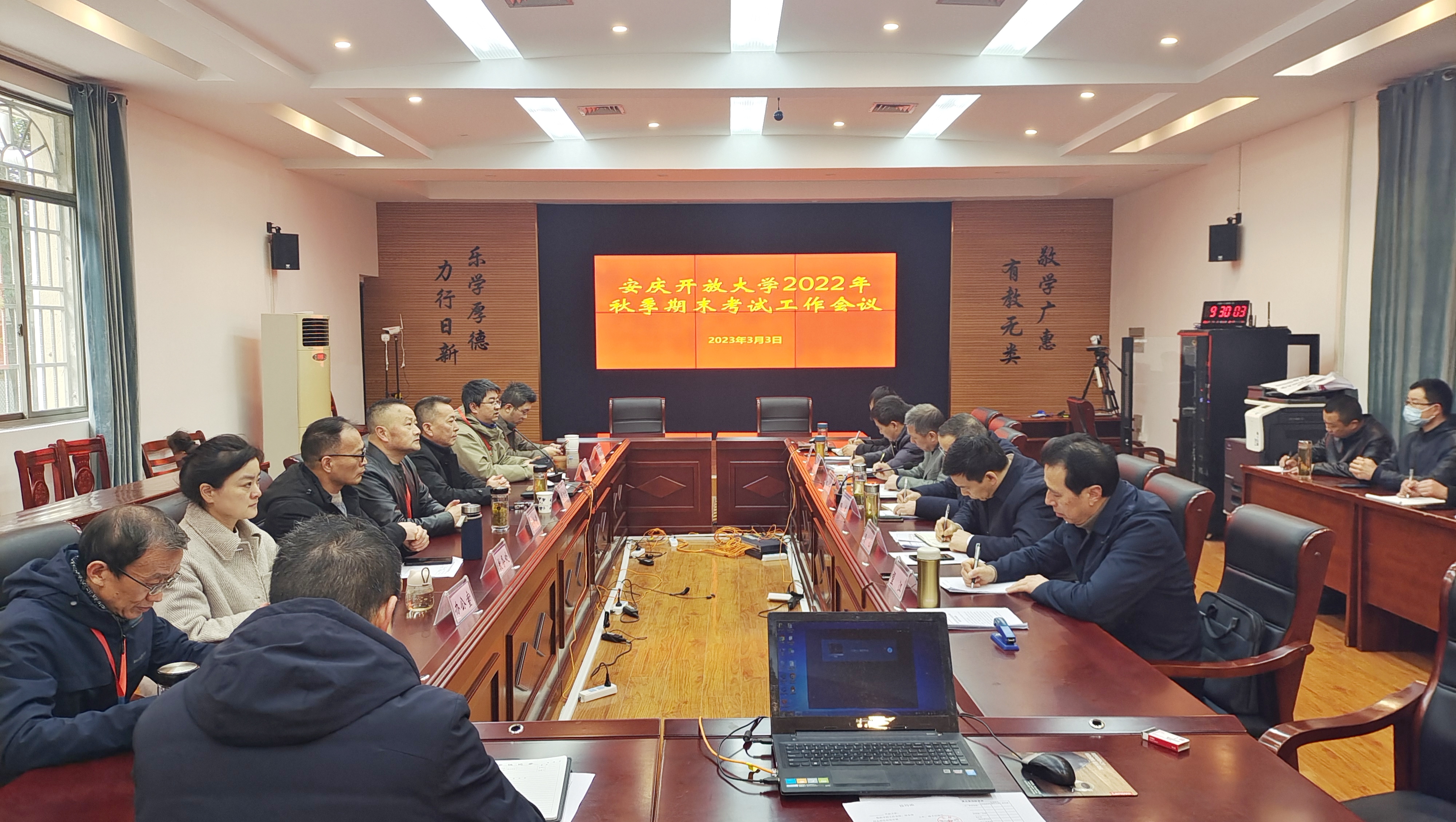 2023年3月3日上午,安博站·官方版网站登录入口在A栋104会议室召开全市开放大学期末考试工作会议。校党委书记、校长曹劲松,党委委员、副校长王佩捷、王付清,各县(市)开放大学主要负责人及各校相关部门负责人参加会议。