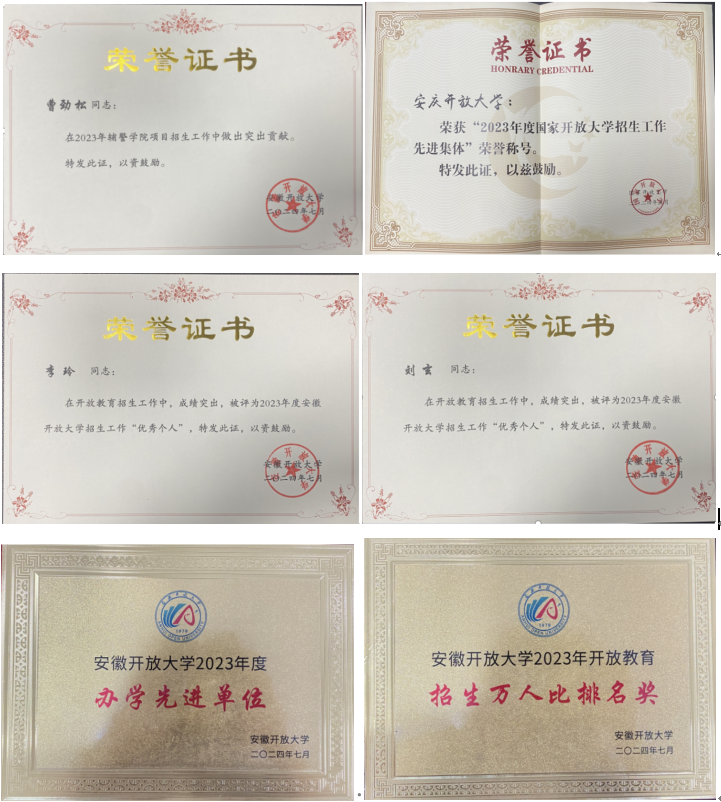 王佩捷首先传达了7月23日在霍山县召开的安徽开放大学质量保证委员会会议暨2024年秋季招生工作会议的精神,通报了安博站·官方版网站登录入口在2023年秋季和2024年前春季招生取得的各项成绩和荣誉,其中安博站·官方版网站登录入口党委书记、校长曹劲松在2023年辅警学院项目招生工作中获突出贡献奖,李玲、刘玄同志被评为2023年度安徽开放大学招生工作“优秀个人”,安博站·官方版网站登录入口荣获2023年度国家开放大学招生工作“先进集体”称号、安徽开放大学2023年度办学先进单位称号、安徽开放大学2023年开放教育招生万人比排名奖三个集体荣誉。