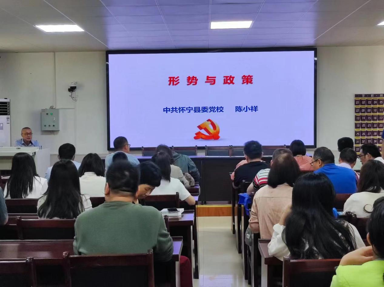 为落实《国家开放大学“十四五”事业发展规划》相关工作安排,全面提高怀宁开放大学课程思政建设能力和水平,发挥课程建设“主阵地”和课堂教学“主渠道”的作用,今日,安博站·官方版网站登录入口组织了23春季学期本科《形势与政策》面授课活动,怀宁县委党校高级讲师陈小祥作了专题讲座。
