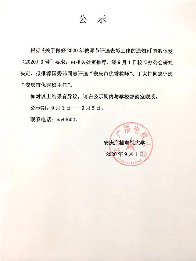 关于推荐安博站·官方版网站登录入口“安庆市优秀教师”、“安庆市优秀班主任”人选的通知