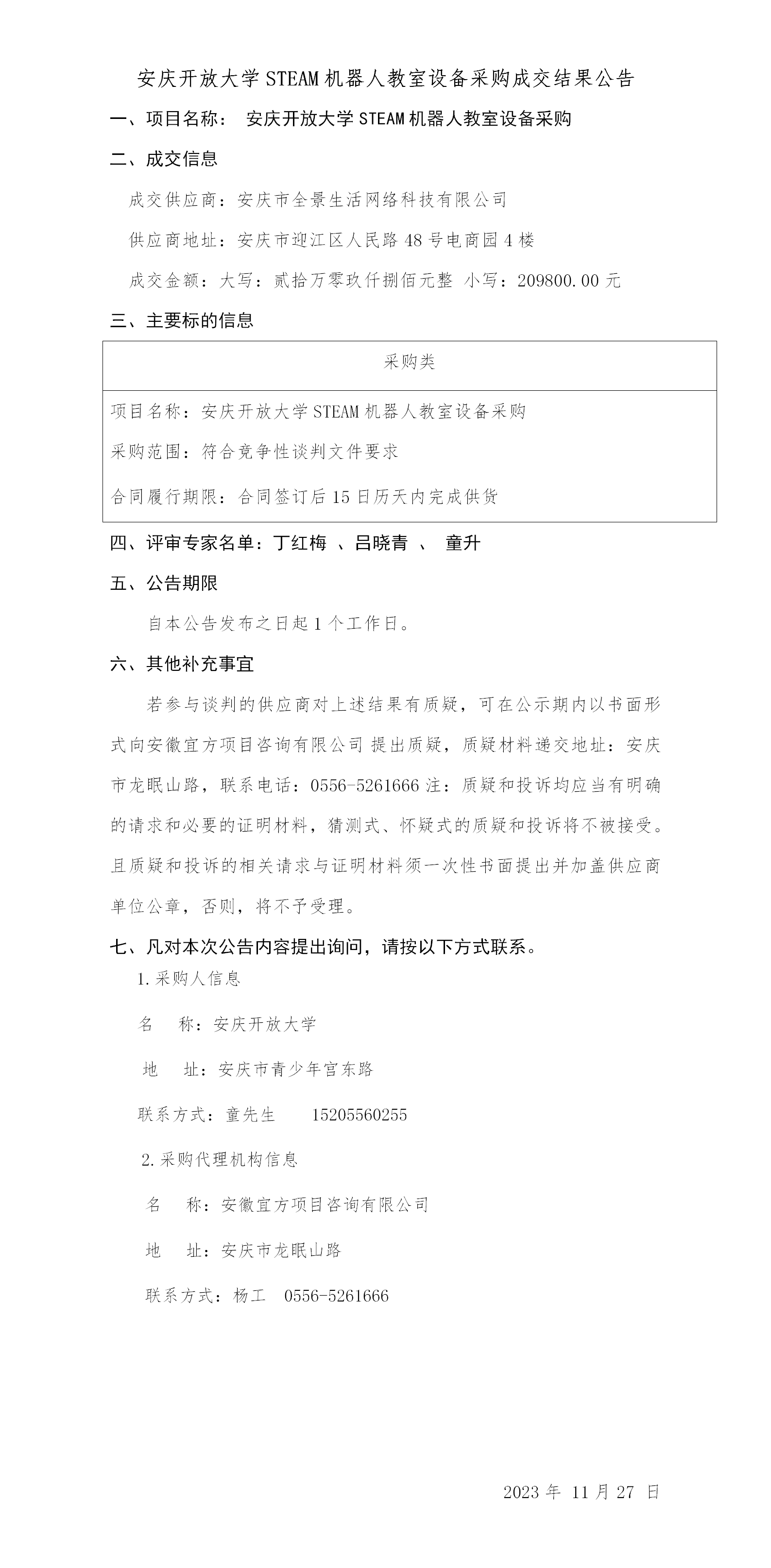 安博站·官方版网站登录入口STEAM机器人教室设备采购成交结果公告