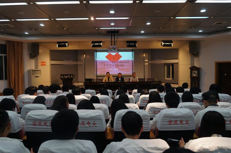根据市教体局的有关文件精神,4月26日,安博站·官方版网站登录入口在C栋一楼报告厅举办了“扫黄打非·护苗2018”暨税法宣传教育讲座。活动由团委副书记、职成教育处副主任吴欢欢主持,保卫处主任庞涛、职成教育处查胜老师出席,全日制学生参加了活动。