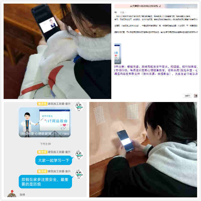 119日,结合当前心理健康工作重点和学校实际,校团委开展:“战疫科普·心理健康-青少年如何进行心理调适”心理健康主题教育活动,各班班主任通过QQ群、微信群组织学习。
