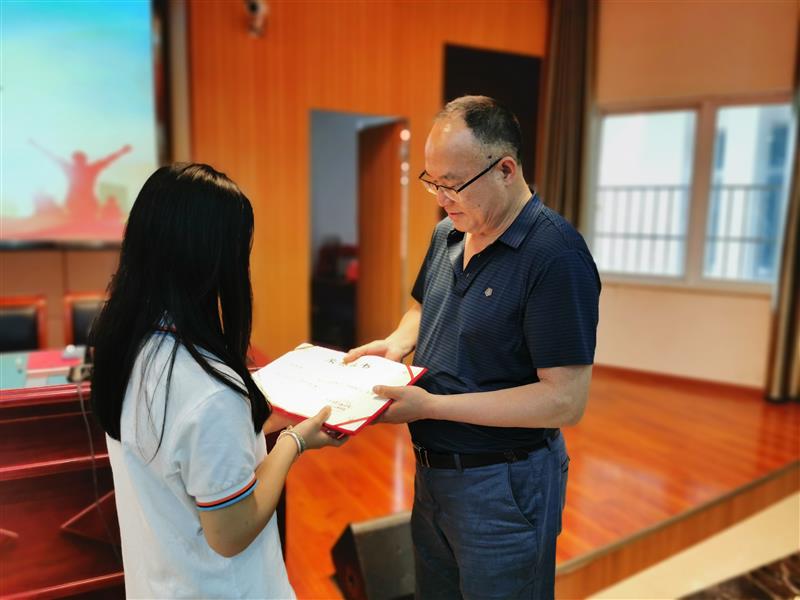 最后校党委委员、副校长周光纯代表校党委对新团员表示祝贺,希望他们牢记初心,入团是人生新的起点,勉励同学们在未来的学习与生活中能以更高、更严的标准来要求自己,以身作则,发挥团员的表率作用。