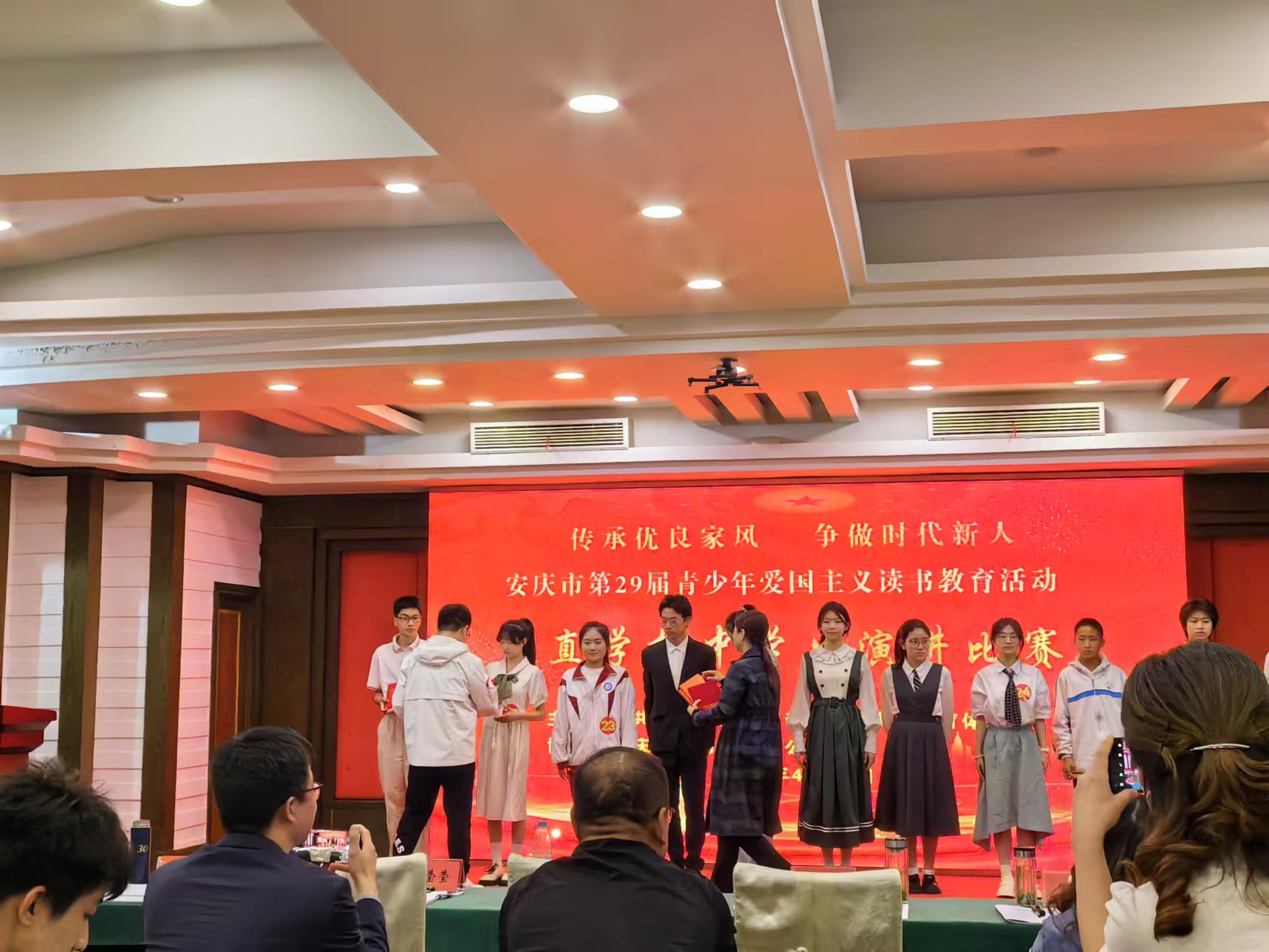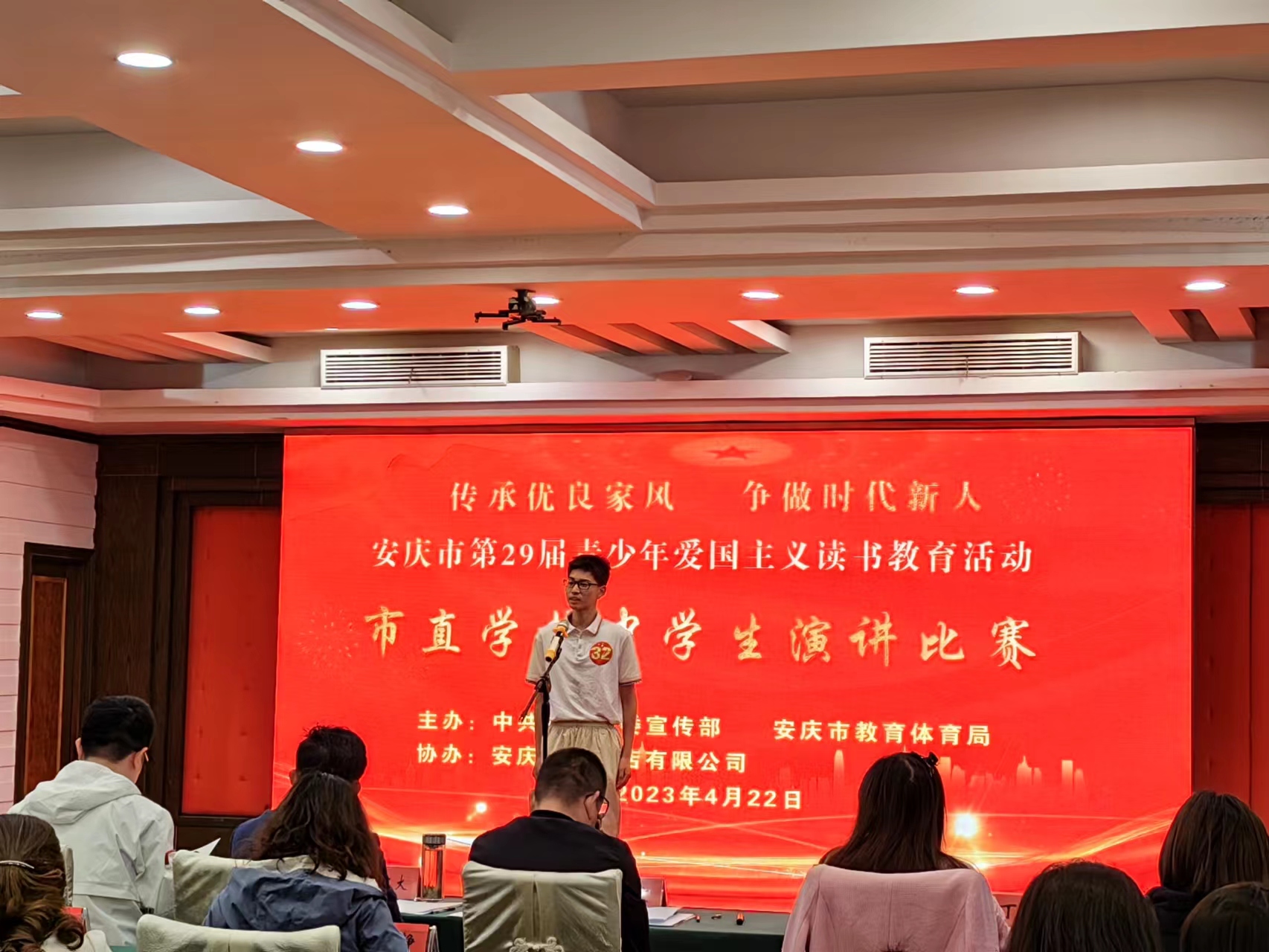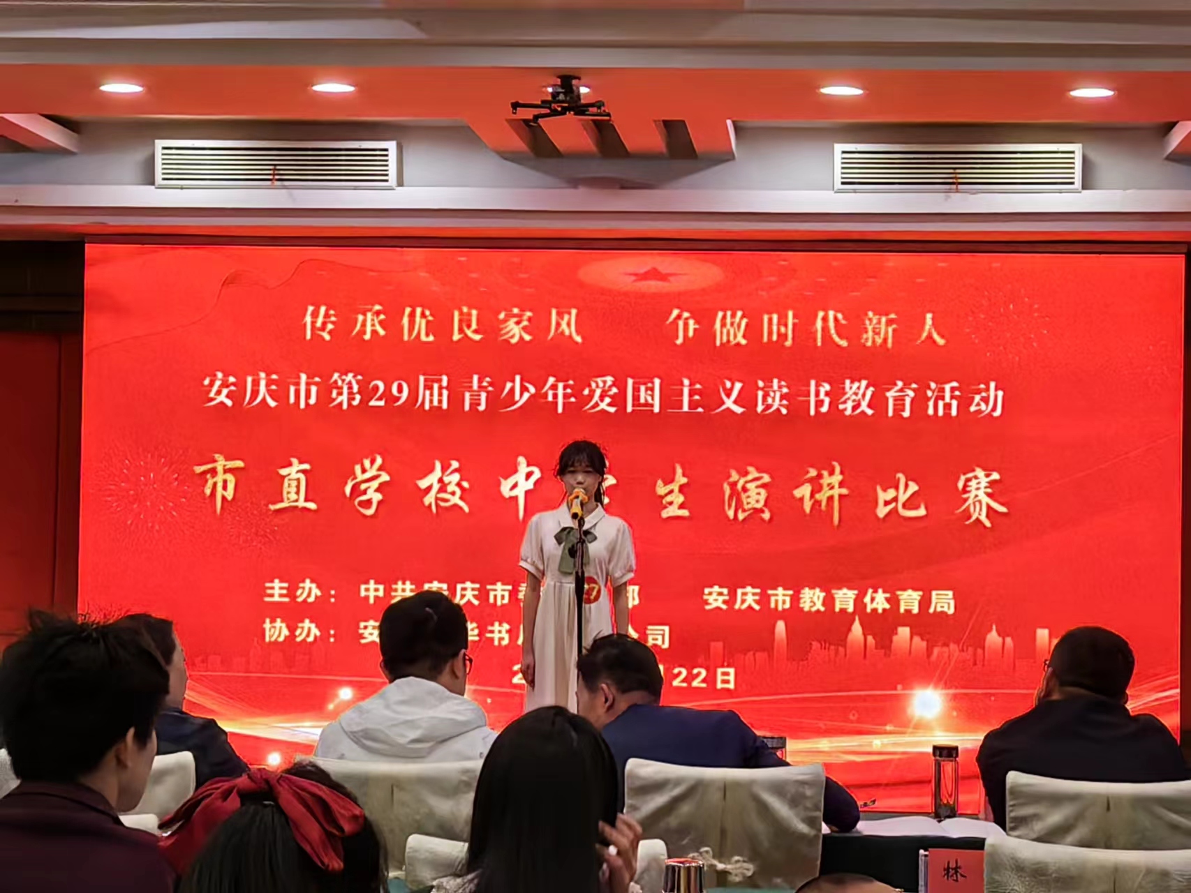 近日,由中共安庆市委宣传部、安庆市教育体育局主办,皖新传媒承办的市直学校“传承优良家风 争做时代新人”中学生爱国主义演讲比赛在迎宾馆举行。