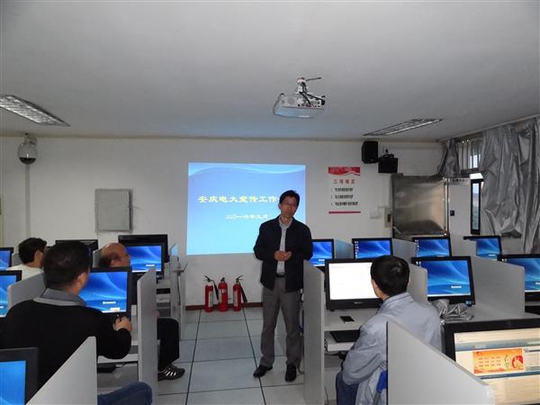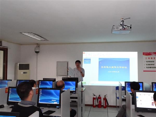 会上,办公室主任钱鹂鹂首先通报了2015年学校各处室新闻稿件的发布情况,培训处王佩捷主任通报了安博站·官方版网站登录入口在安庆市网络安全执法检查和学校网站迁移改造情况,强调了网络安全工作的重要性。程初步老师就新网站后台管理技术问题现场进行了简短的培训。