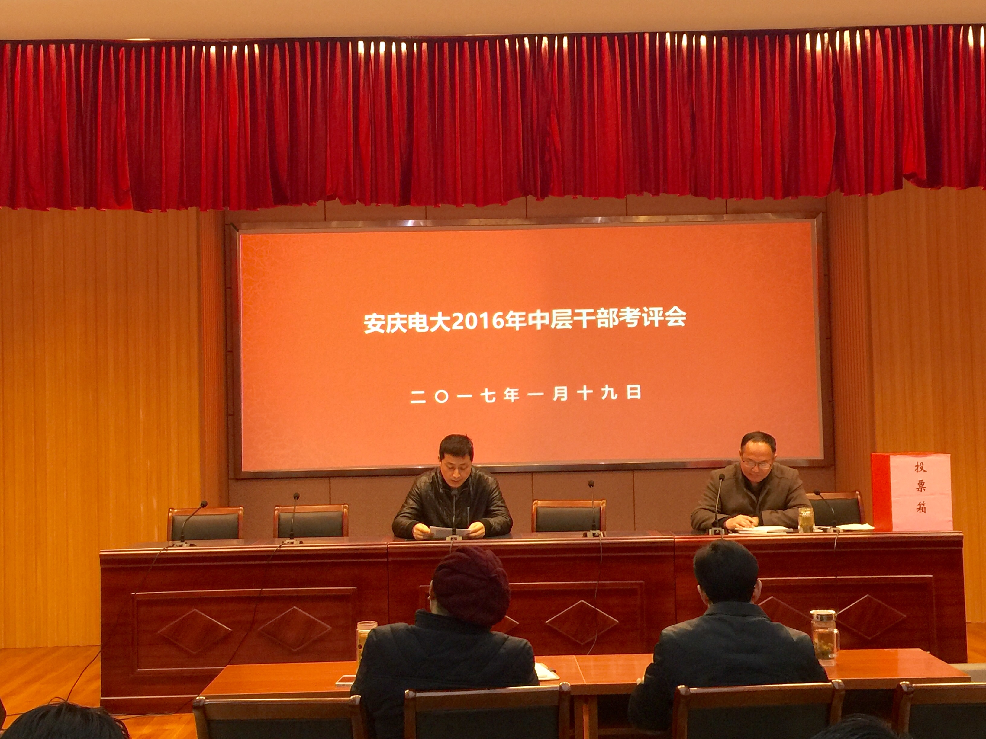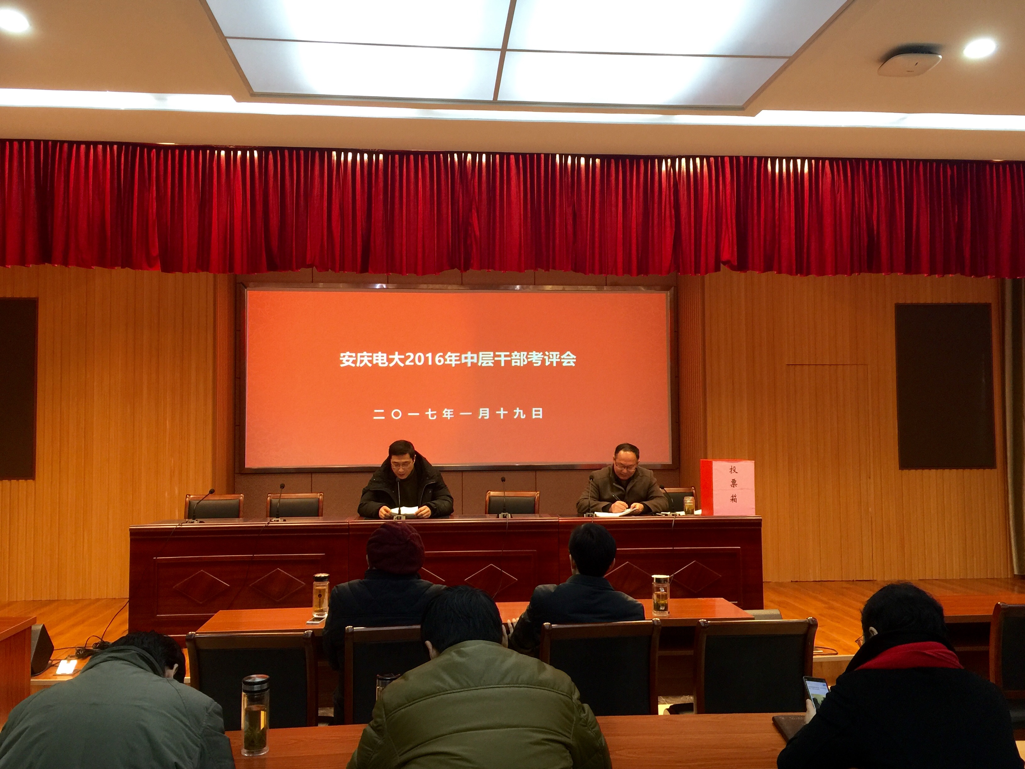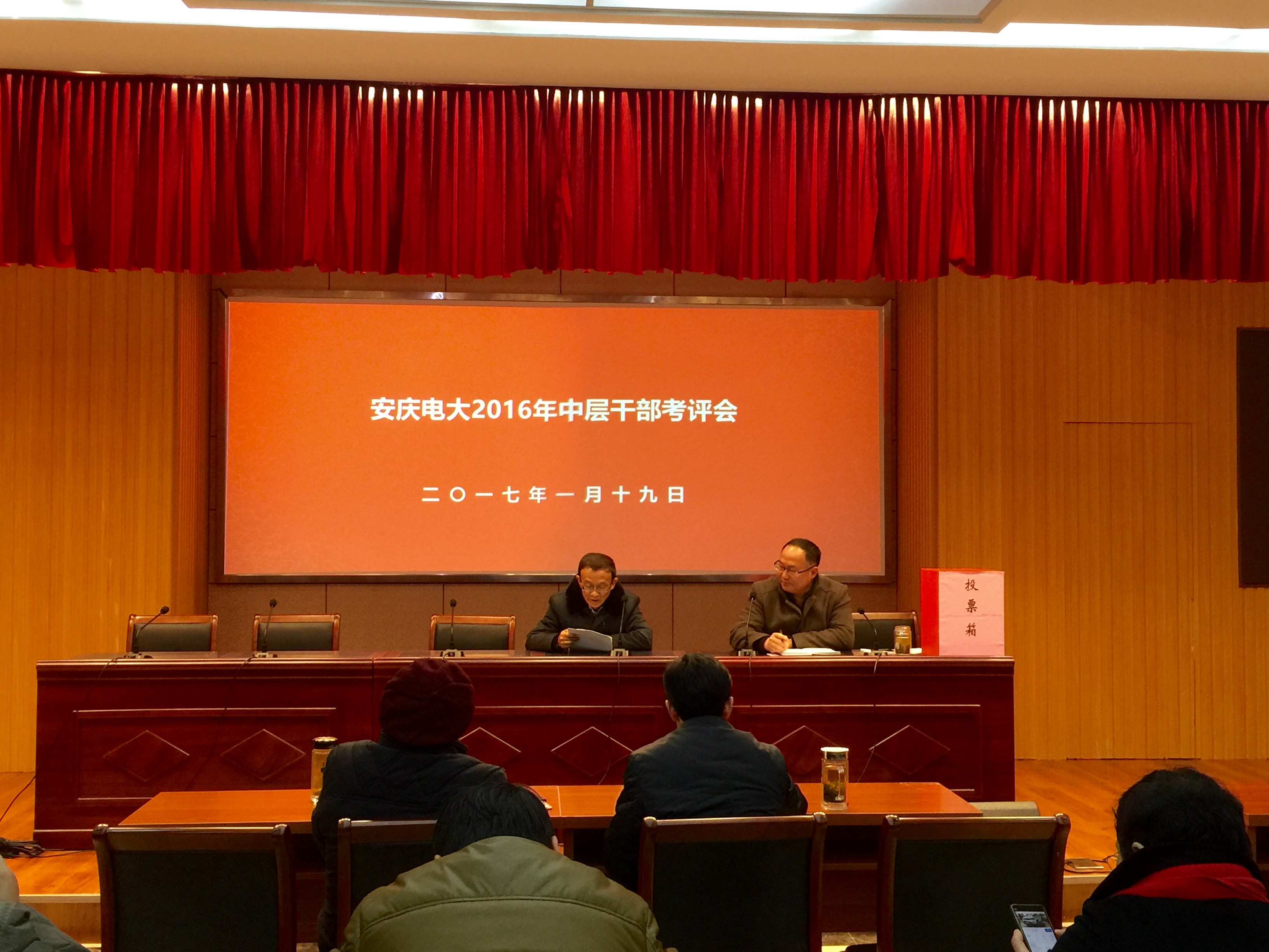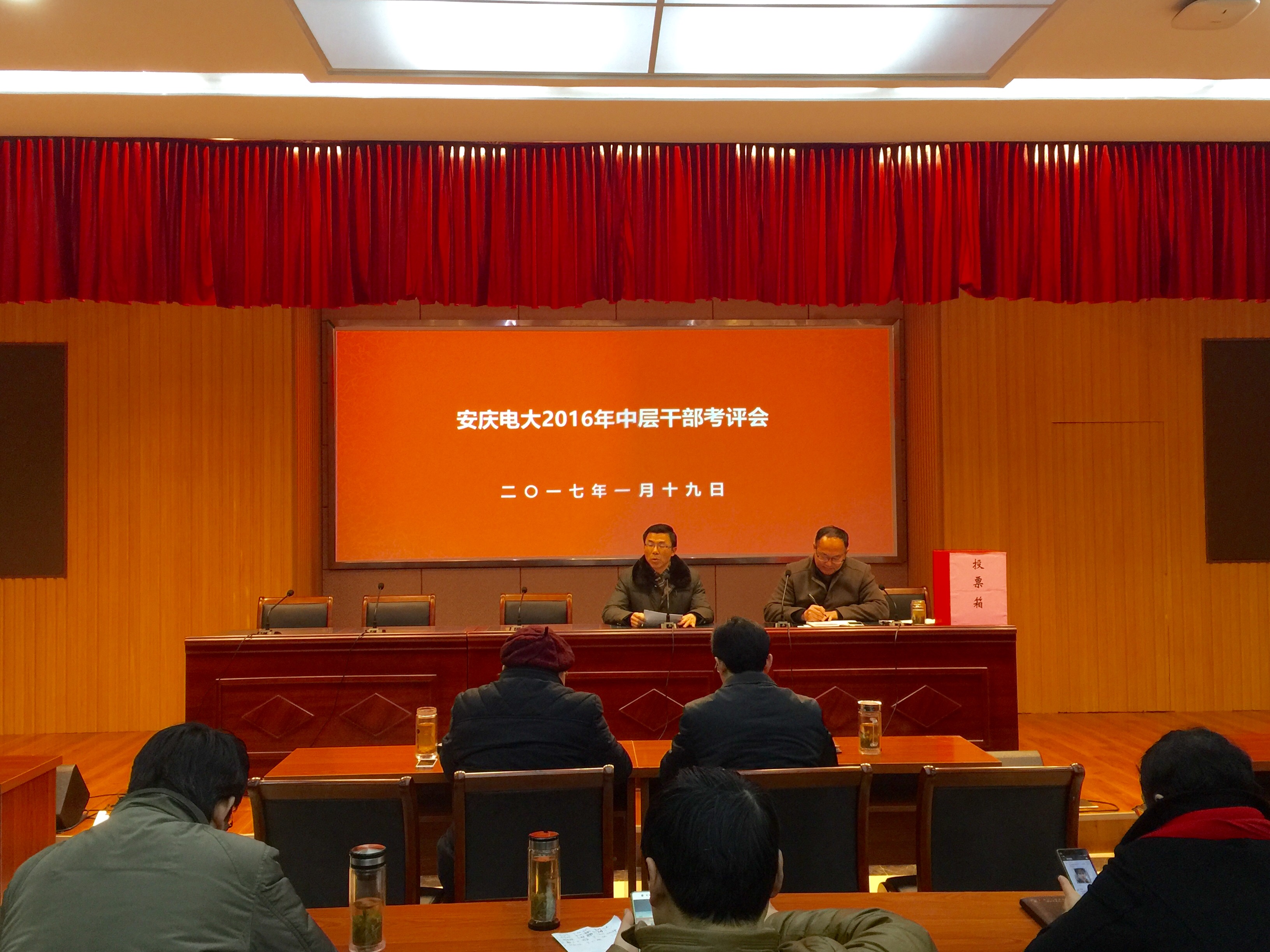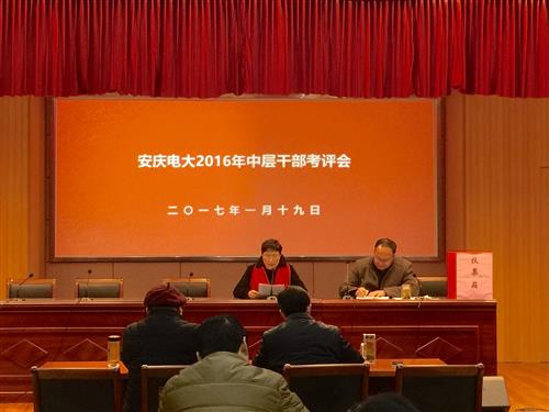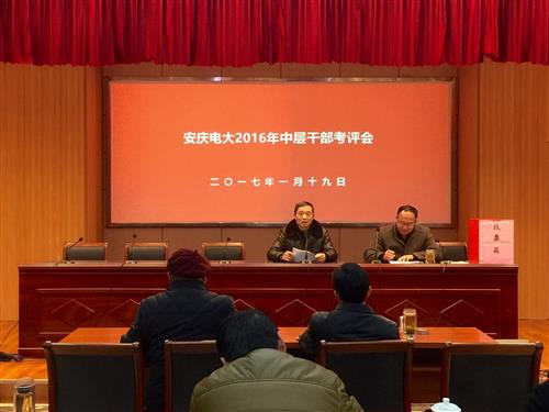 1月19日上午,安博站·官方版网站登录入口在C幢205教室召开2016年度中层干部和处室工作考评会。校党委书记、校长毕明生,副校长许迪楼出席会议,全体教职工参加了会议。会议由副校长周光纯主持。