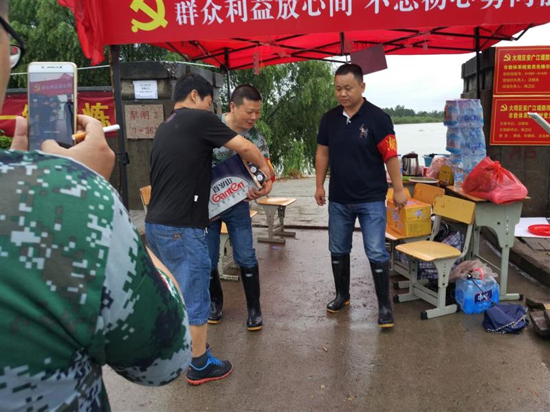 7月10日上午,受校党委书记、校长吴雪恩的委托,副校长周光纯一行冒雨来到大观区安广江堤市教体局防汛段,慰问奋战在抗洪抢险一线的市七中老师。