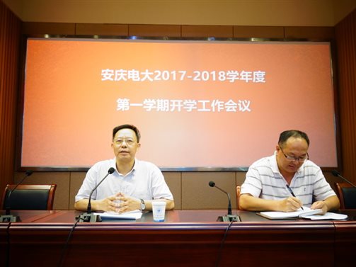 8月29日上午,安博站·官方版网站登录入口2017—2018学年度第一学期开学工作会议在C楼205报告厅召开,会议由副校长周光纯主持,校党委书记、校长吴雪恩出席会议并讲话,全体教职工参加了会议。