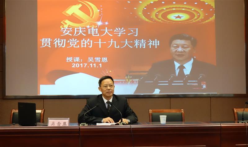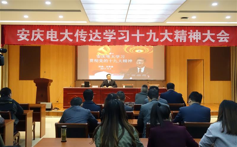 111日下午,安博站·官方版网站登录入口学习传达十九大精神大会在C205报告厅举行。校党委书记、校长吴雪恩主持会议并作专题辅导报告。全体教职工参加了会议。