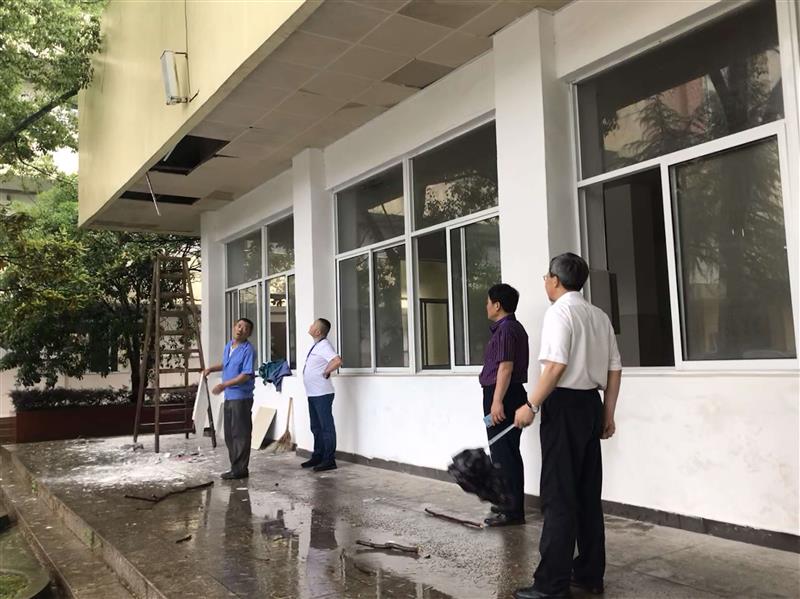 陈亚玲先后察看了学校排水是否顺畅、教学楼及办公室的门窗是否关好、电源是否切断等情况,重点对学校食堂食材、学生饮用水进行了检查,并听取校党委书记、校长吴雪恩对防汛、校园“防内涝”工作情况的汇报。