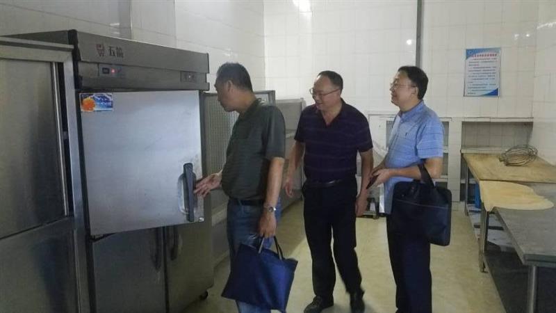 9月5日,市卫健委副主任张贤惜带队,市教体局、市市场监管局、市卫健委联合督查组一行五人,来安博站·官方版网站登录入口开展食品卫生安全检查。副校长周光纯和后勤处主要负责人陪同检查。