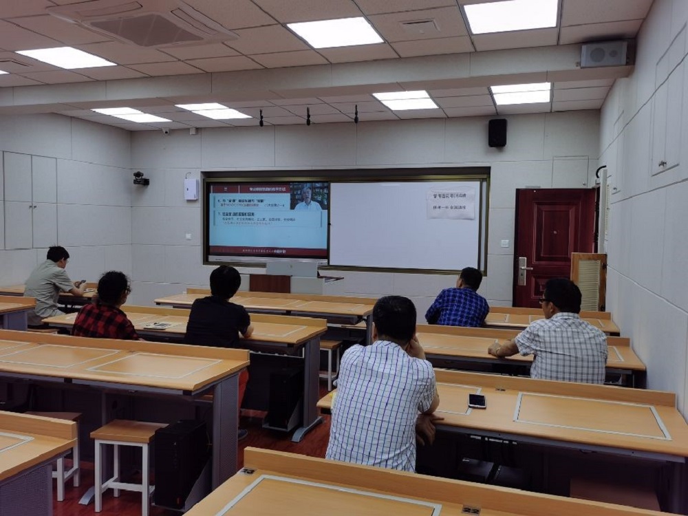 与会人员首先集中观看学习由国家开放大学主办的“新时代背景下加强开放教育课程思政建设”培训会,听取了上海中医药大学教授张黎声关于专业课程融入思政工作的实现途径主题讲座。
