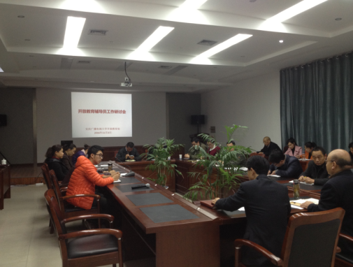 2016113日下午,安博站·官方版网站登录入口在A104 会议室召开开放教育辅导员工作研讨会。校党委书记、校长毕明生 、副校长许迪楼出席,开放教育辅导员和开放教育处工作人员参会。会议由副校长许迪楼主持。