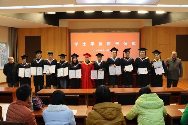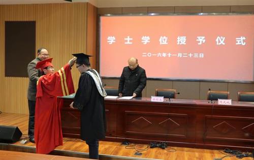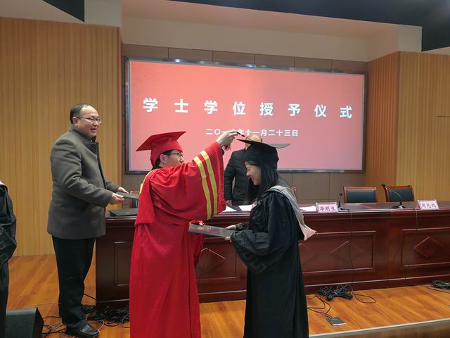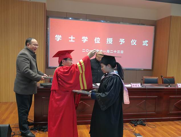 在学位授予仪式上,副校长许迪楼宣读了学士学位获得者名单,校长毕明生身着红色导师服,逐一颁发了学位证书,正冠拨苏,握手道贺,合影留念。师生们共同见证了这一庄严而神圣的时刻,热烈的掌声在现场一次又一次响起。