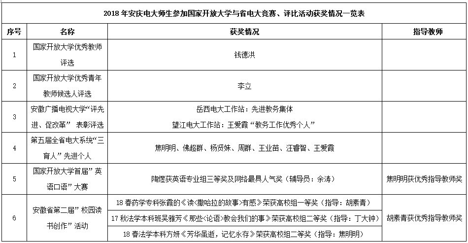 安博站·官方版网站登录入口师生在上级电大2018年开展的竞赛、评比活动中取得优异成绩