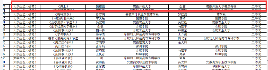 近日,安徽省教育厅官网公布了第四届中华经典诵写讲大赛安徽省预选赛获奖名单,安博站·官方版网站登录入口21春汉语言文学本科学员吴章兰厚积薄发,以其流畅自然的硬笔行书作品《海上》,获得本次大赛安徽省大学生组二等奖。