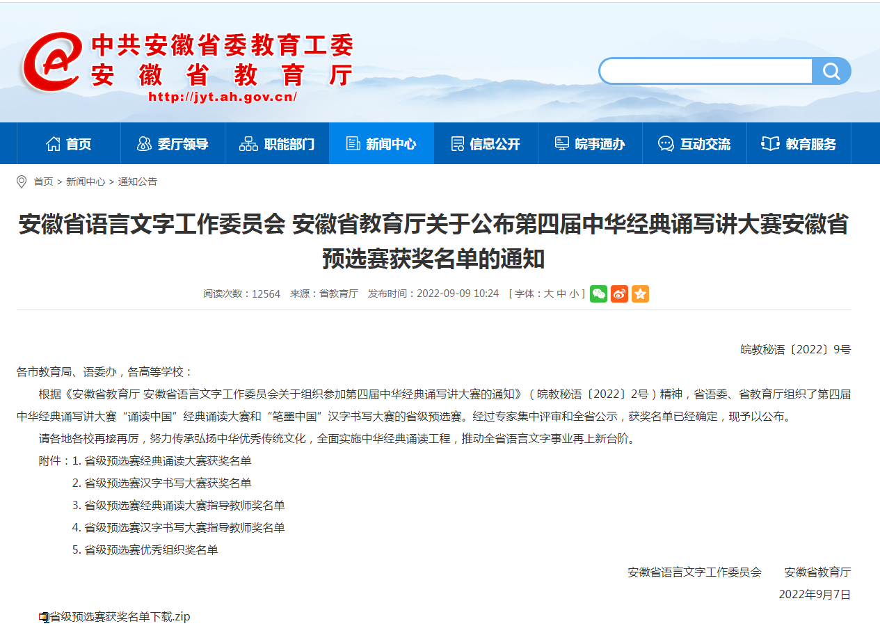 安博站·官方版网站登录入口学员在第四届中华经典诵写讲大赛安徽省预选赛中喜获二等奖
