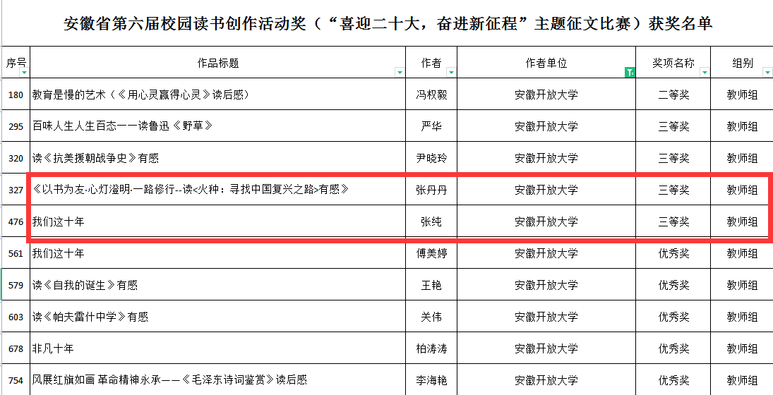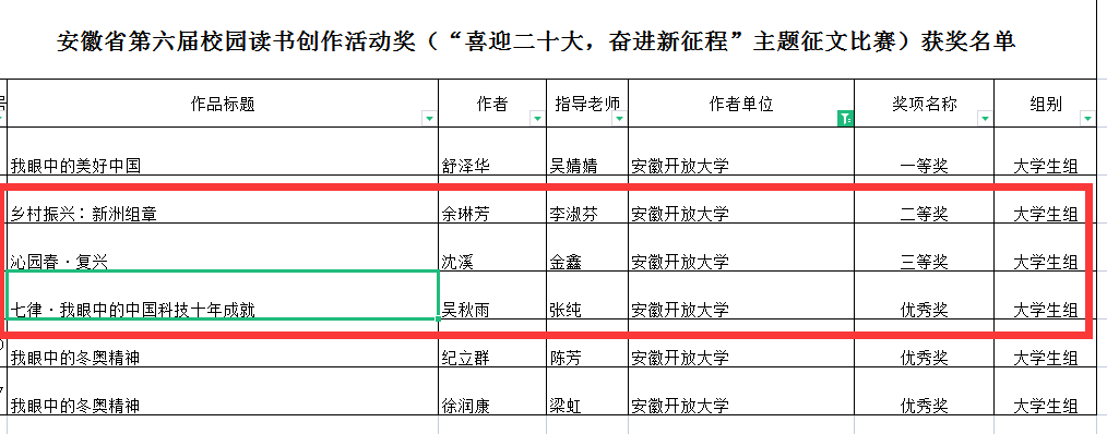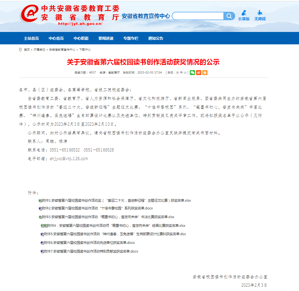 安博站·官方版网站登录入口师生喜获安徽省第六届校园读书创作活动主题征文比赛大奖