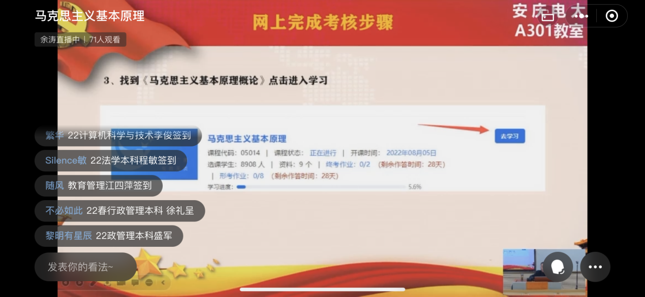 此外,《毛泽东思想和中国特色社会主义理论体系概论》、《习近平新时代中国特色社会主义思想》以及《中国近现代史纲要》等思政类直播课程也相继上线,全面覆盖安博站·官方版网站登录入口思政教学内容,学员学习成效显著。