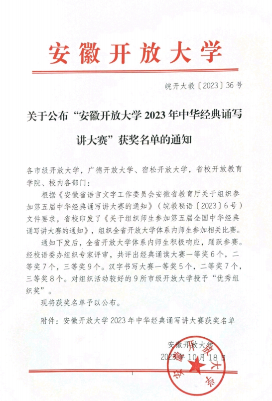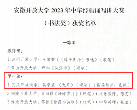 安徽开放大学2023年中华经典诵写讲大赛安博站·官方版网站登录入口师生再创新绩