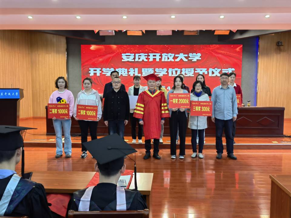 随后,校领导为获得安博站·官方版网站登录入口第一届短视频创作大赛奖项的学员们颁发了荣誉证书和奖金。此次短视频创作大赛吸引29个作品参赛,学员们用镜头和语言记录自己眼中的安庆开大,彰显了对母校的情怀和莘莘学子的风采。