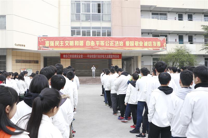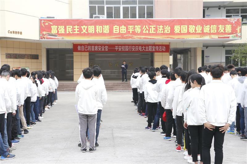 随后,团委副书记、职成处副主任吴欢欢宣读了“做自己的首席安全官--平安校园行”倡议书。建筑工程技术专业17级3班江万秋子同学,以《平安校园,从我做起》为题,代表全体学生作表态发言。