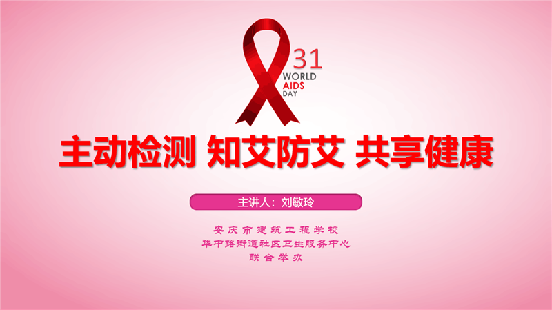 在第31个“世界艾滋病日”来临之际,安博站·官方版网站登录入口联合华中路街道社区卫生服务中心于1130日下午在C楼报告厅举办“主动检测知艾防艾共享健康”的艾滋病知识讲座。校职成处负责人程学刚主任出席了讲座。