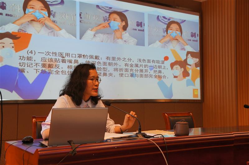 校团委副书记李淑芬从学生卫生的个人防护以及入校后学生心理健康的疏导等方面跟大家进行交流。