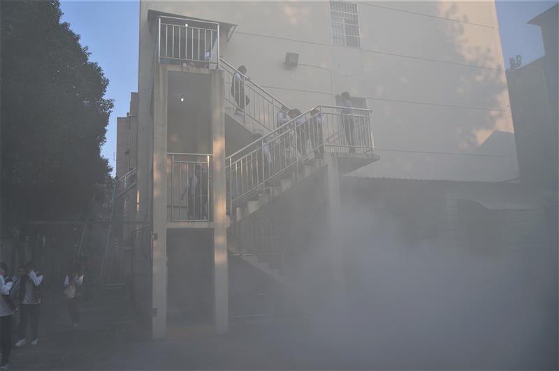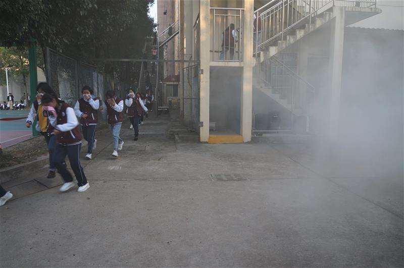 报告会后,举行了学生公寓火灾疏散演练。随着火情警报声,一场学生公寓安全疏散演习在学生公寓展开,300余名师生参加了演习。