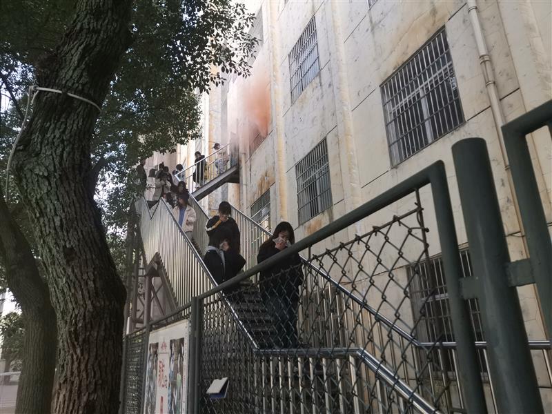 报告会后,举行了学生公寓火灾疏散演练。下午3点35分,随着校园警报的急促声响起,应急疏散演习正式开始。师生按照指定路线,弯着腰,用手、袖口捂住嘴鼻迅速有序地紧急撤离。4分30秒之内,疏散学生全部到达操场指定位置,经各班清点人数,确认全部学生安全撤离。疏散过程秩序井然,达到预期效果。