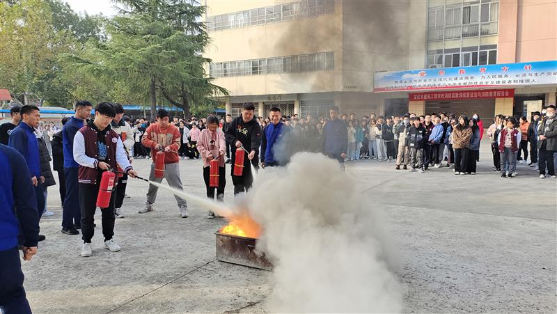 随后,进行灭火模拟演练。消防战士向全校师生示范并讲解了如何正确使用灭火器及使用要领,各班学生代表参加了灭火实战演练。