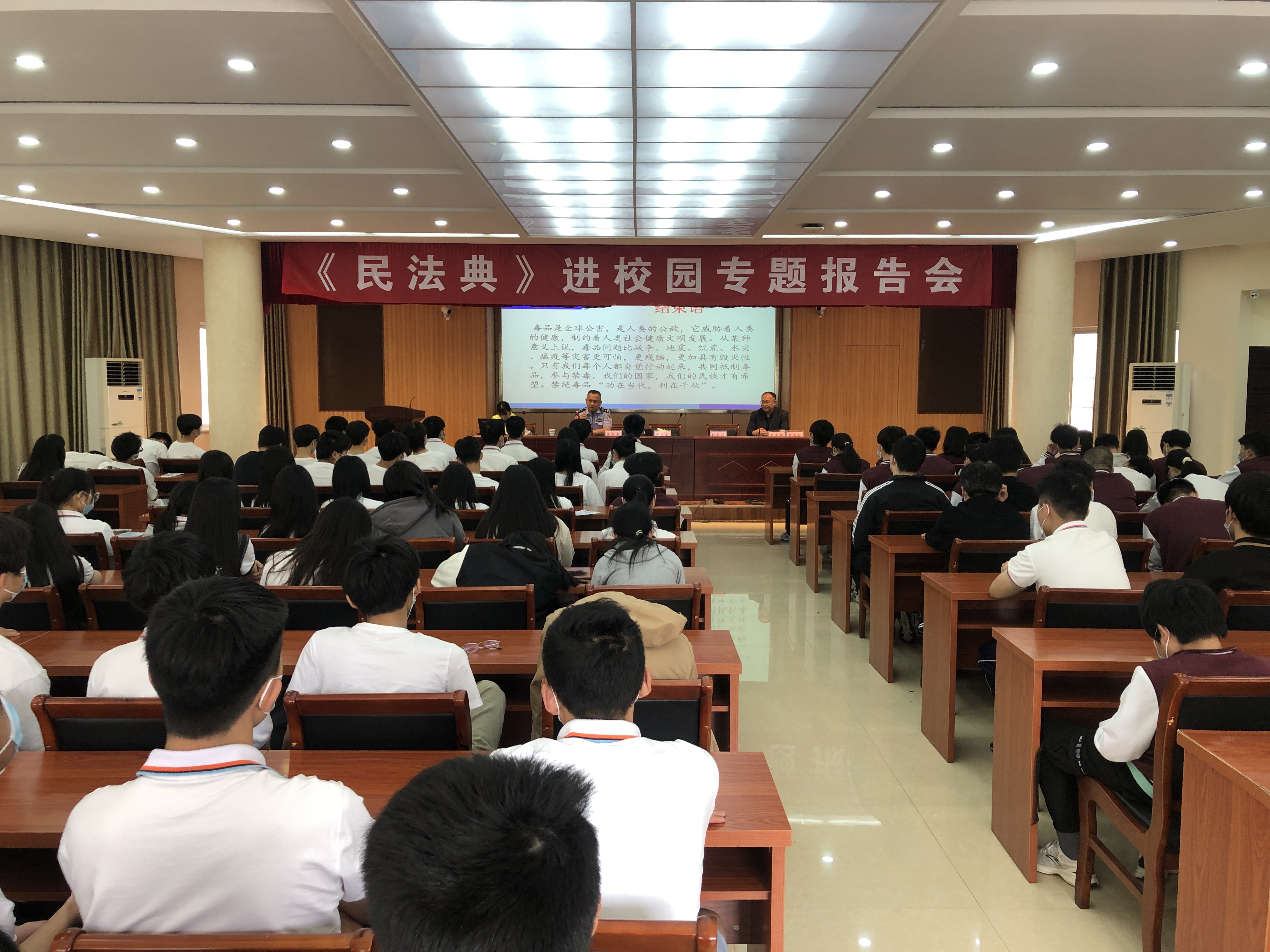此次宣讲,吴承钧副科长以“以法为盾 守护青春”为主题,采用生动活泼的语言,通过典型案例向师生们普及《民法典》相关知识解析法律条文,让现场师生通俗易懂的了解《民法典》,通过发生在校园中的鲜活案例,将简单实用的法律知识融入到日常行为中,培养青少年法治理念,树立权责意识、规则意识,引导学生运用法治思维去思考和解决生活中遇到的问题,学会用“法律武器”保护自身合法权益。