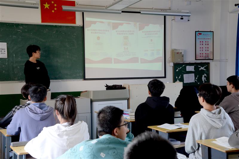 学校通过线上线下营造活动氛围,校园醒目位置悬挂宣传海报并通过校广播站、班级微信群等平台宣传《中华人民共和国反间谍法》以及反奸防谍相关案例。向广大师生派发宣传资料,各班主题班会上同时进行宣讲《中华人民共和国反间谍法》并接受学生咨询。
