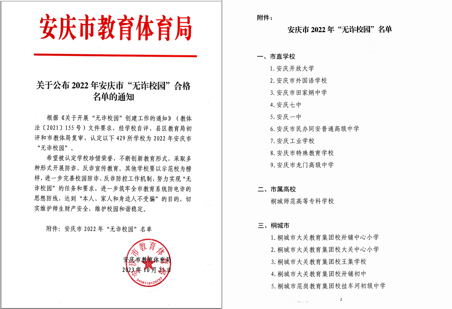 无诈校园 你我共创——安博站·官方版网站登录入口被认定为2022年安庆市“无诈校园”