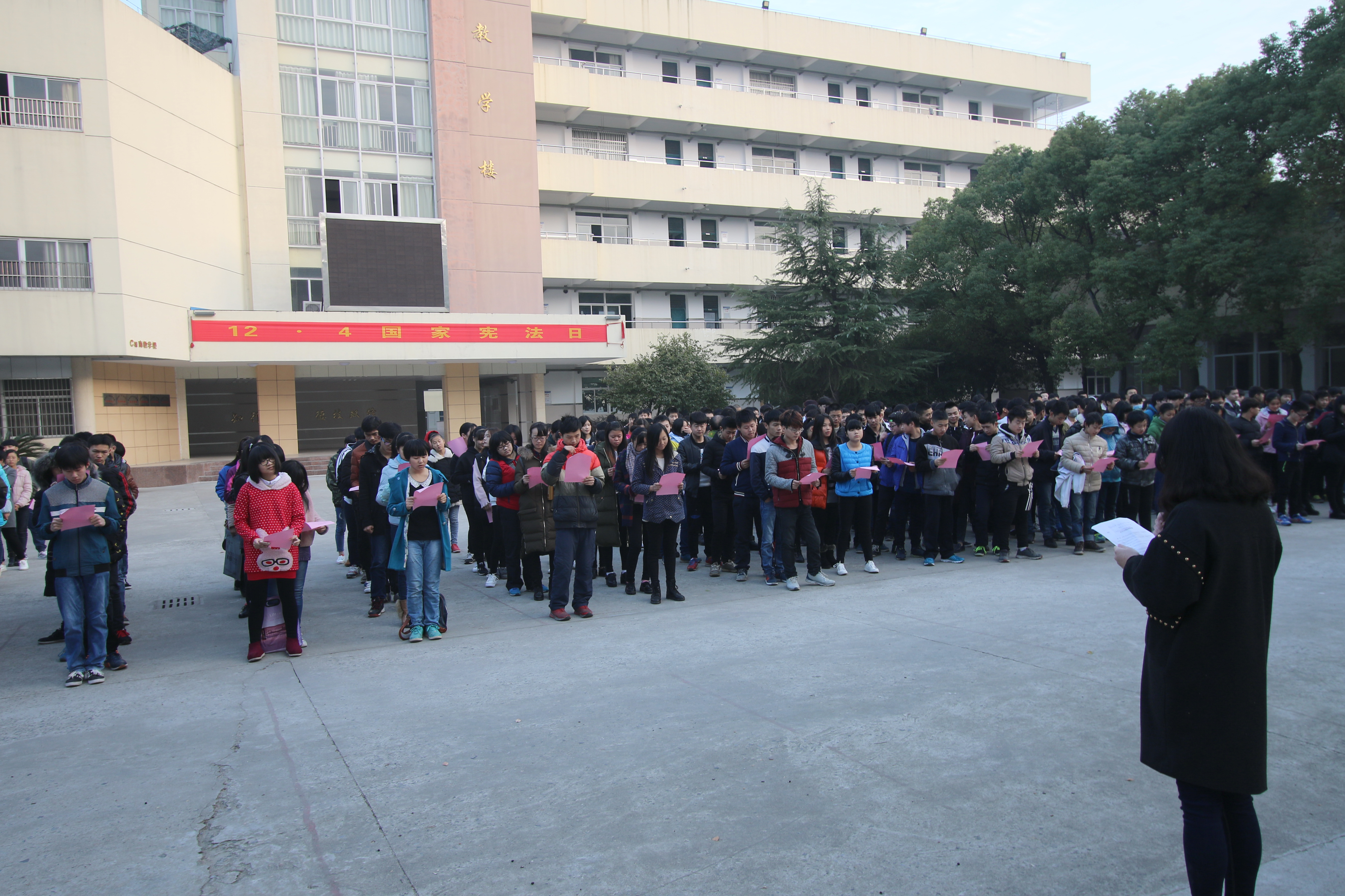 12月5日,在周一早晨升国旗仪式上, 安博站·官方版网站登录入口组织全校学生开展了宪法晨读活动。晨读活动由学生干部领读宪法部分章节,现场全体师生跟读。