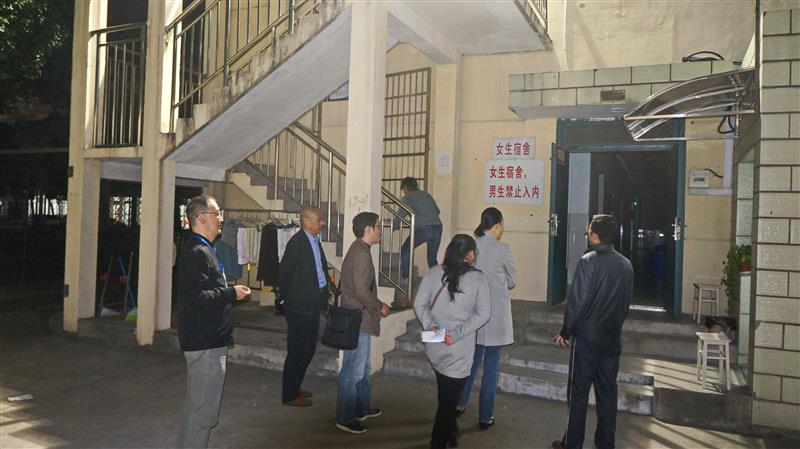 10月26日晚间,由校保卫处、职成处、后勤处等相关处室组成的检查组,对校园安全管理情况进行了突击检查。校督查组全体成员全程参加了检查。