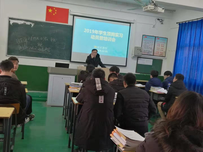2019年12月4日下午,安博站·官方版网站登录入口招生就业处在职成处配合下,在学校C楼301教室召开了2017级学生(毕业生)顶岗实习动员暨培训会,2017级参加顶岗实习的学生全体参加会议,招生就业处主任张国祥、职成处主任程学刚分别讲话。