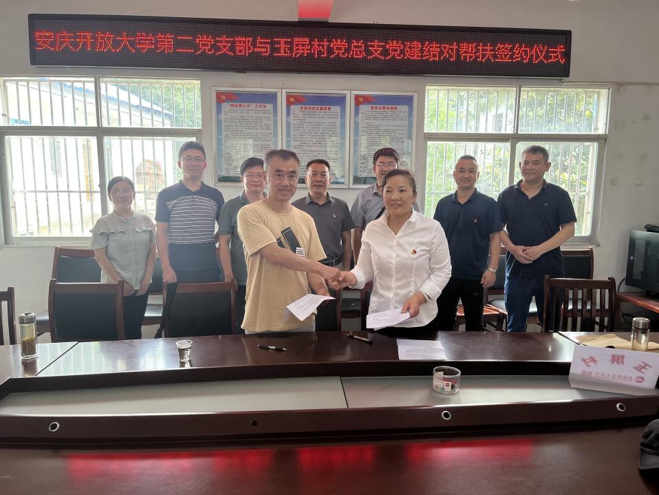 在村党员活动室,双方共同签订了结对共建协议,围绕人员构成、组织建设和未来合作开展等方面进行了深入交流。学校向玉屏村捐赠四台电脑设备,助力玉屏村党总支党建信息化建设和乡村振兴工作的开展。
