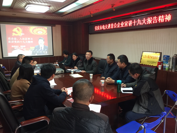 11月23日下午,安博站·官方版网站登录入口第三党支部书记马路、第四党支部书记刘剑亚一行四人到“党建带群建”联系单位--大观区东二巷社区辖区单位--安庆市第一建筑设计院宣讲十九大精神。宣讲会由设计院党总支刘书记主持,安博站·官方版网站登录入口第四支部书记、高级讲师刘剑亚主讲。东二巷社区在职党员和设计院的党员共20多位党员参加了此次学习。