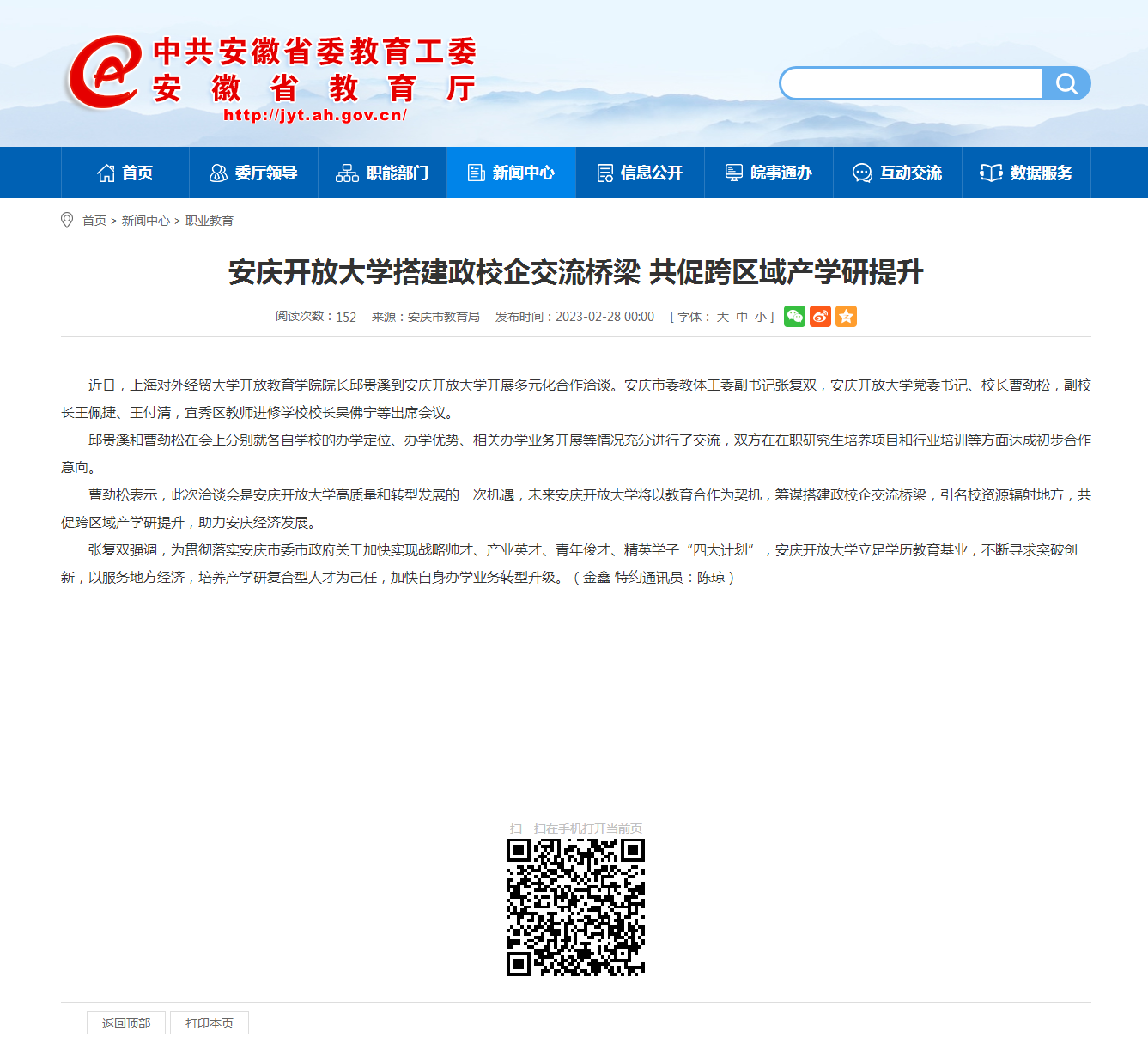 安徽教育网:安博站·官方版网站登录入口搭建政校企交流桥梁 共促跨区域产学研提升