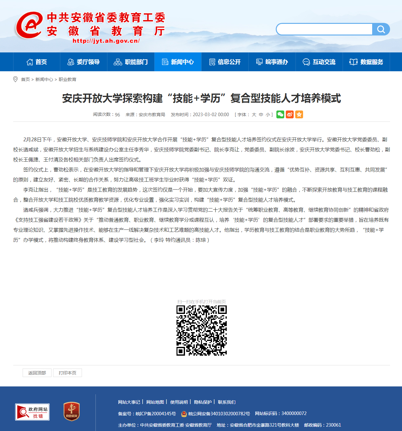 安徽教育网:安博站·官方版网站登录入口探索构建“技能+学历”复合型技能人才培养模式